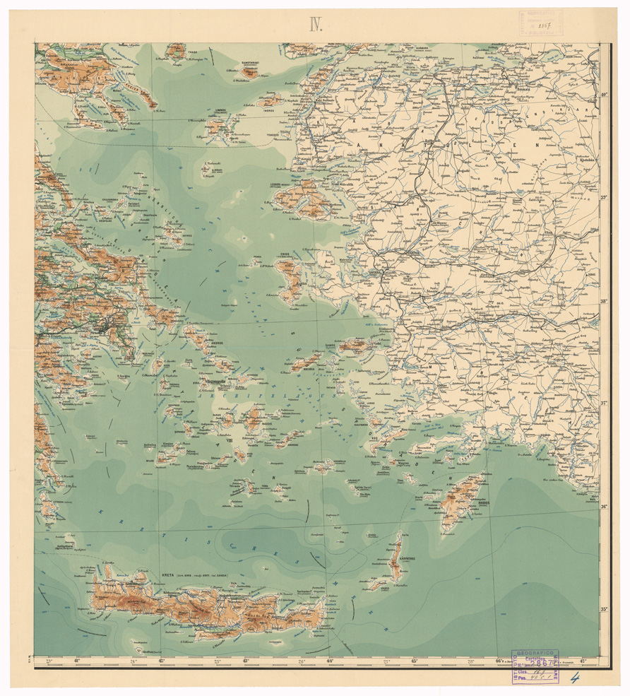 "EUROPA - CARTE GENERALI Autore: Militar Geographisches Inst. Fogli 4 - Rappresentazione orografica a tinte ipsometriche. Inventario SBN 7-2867 "