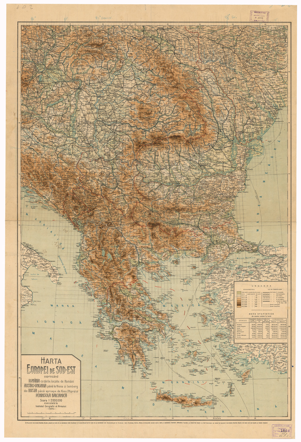 "Autore: Ist. Geogr. el Armatei Luogo di edizione Bucarest Fogli 1 - Stampa policroma, grafia in lingua romena. Inventario SBN 7-1866"