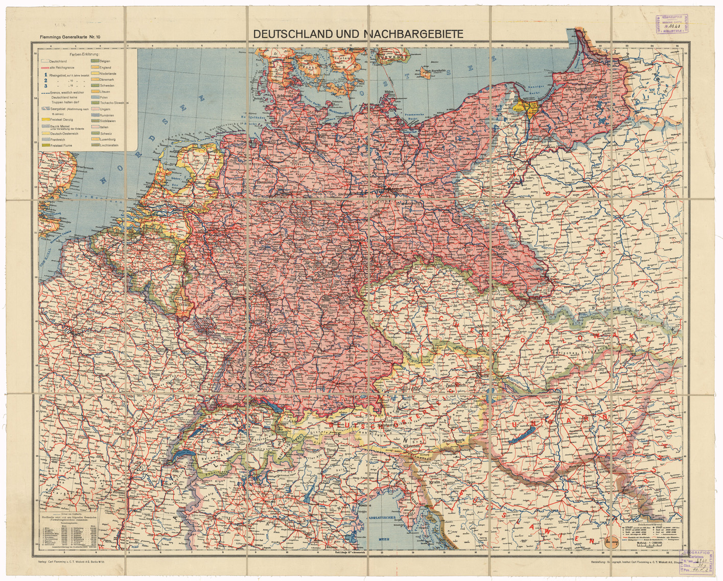 "EUROPA - CARTE GENERALI Autore: Carl Flemming Fogli 1 su tela a stacchi - Stampa policroma, rappresentazione orografica planimetrica. Inventario SBN 7-4240"