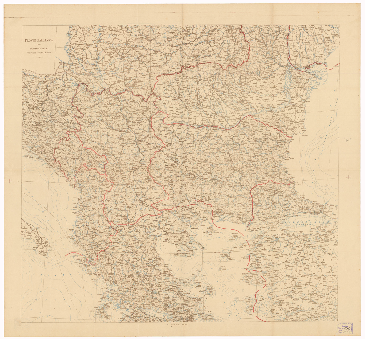 "Autore: Militar Geographischen Institute (Comando Supremo Ufficio Operazioni) Fogli 1 - Tipo di stampa policroma, rappresentazione orografica a tinte ipsometriche. Inventario SBN 7-6139"