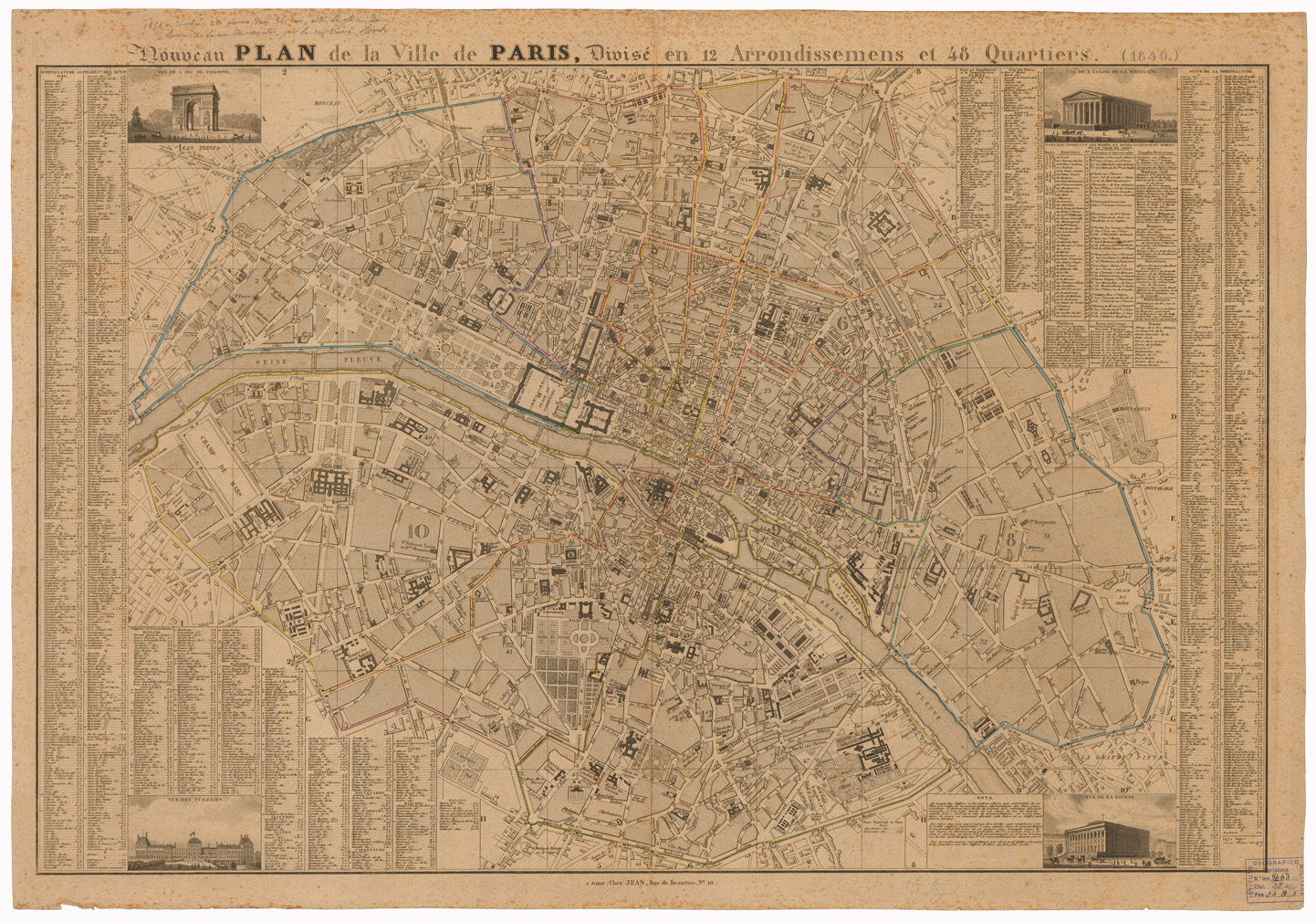NOUVEAU PLAN DE LA VILLE DE PARIS, DIVISE 12 ARRONDISSEMENS ET 48 QUARTIERS