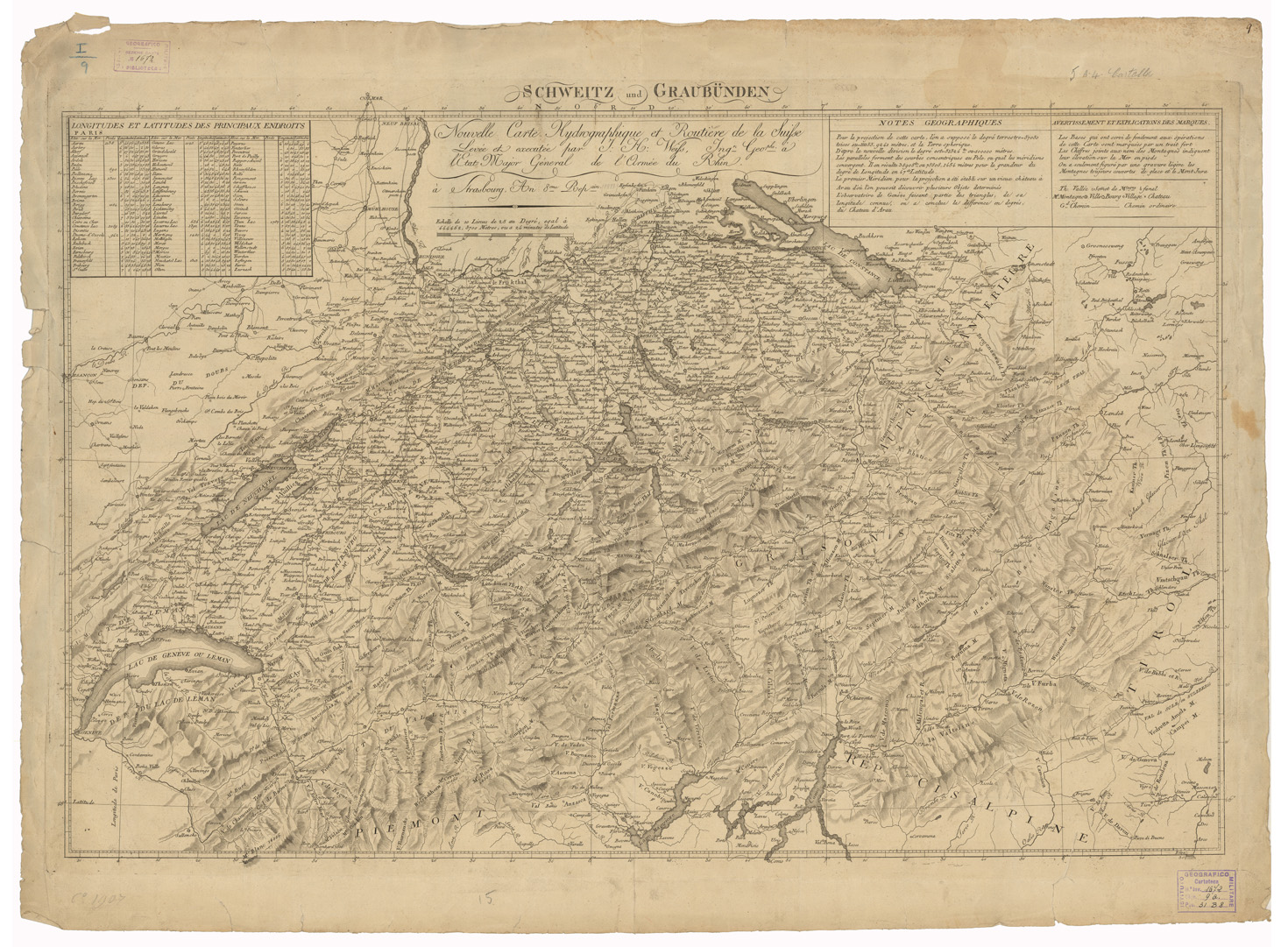 "Autore: F.H. Weiss Fogli 1 Tipo di stampa: incisione su rame, rappresentazione orografica dimostrativa. Inventario SBN 7-1672 "