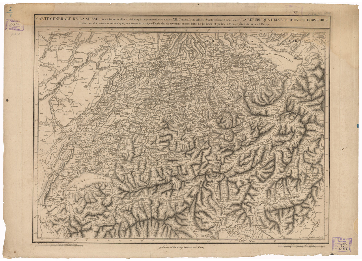 "Autore: Artaria und Comp. Fogli 1 Tipo di stampa: incisione su rame, rappresentazione orografica tratt. a luce obliqua. Inventario SBN 7-1671"