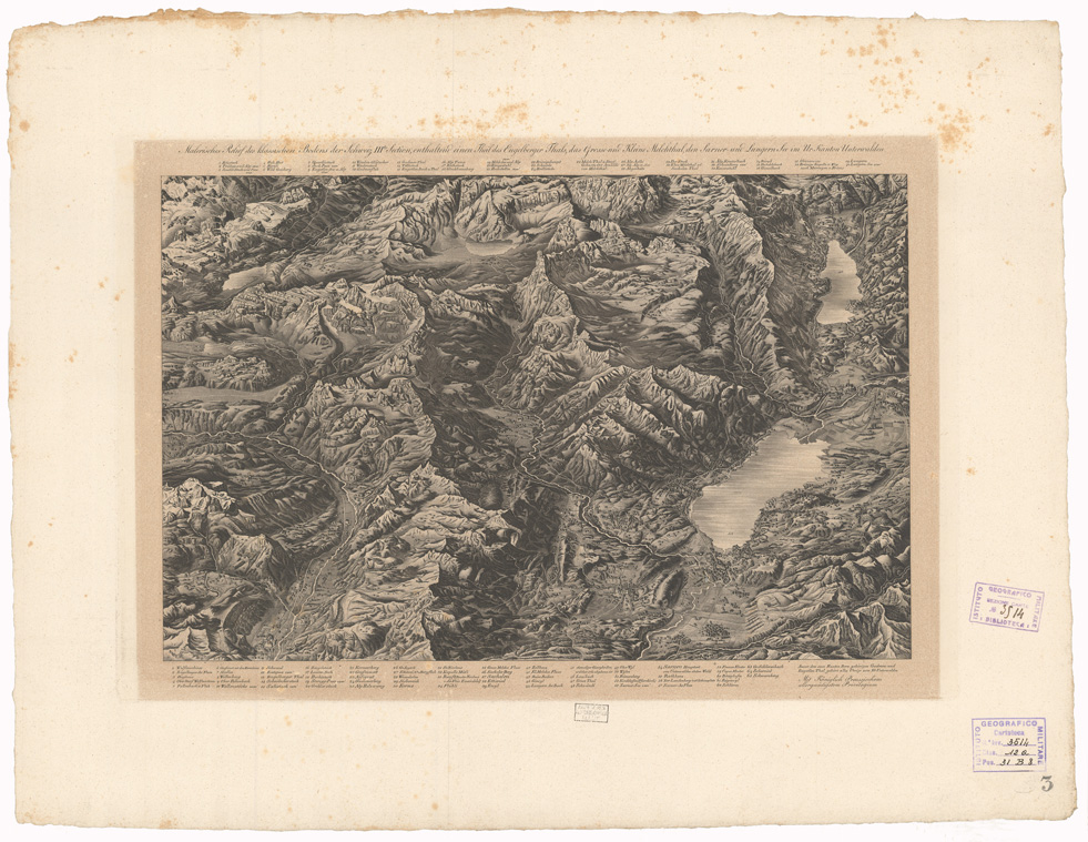 "senza scala Autore: Delkeskamp Fogli 12 Tipo di stampa: incisione, rappresentazione orografica prospettica. Inventario SBN 7-3514 "