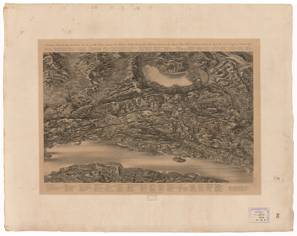 "senza scala Autore: Delkeskamp Fogli 12 Tipo di stampa: incisione, rappresentazione orografica prospettica. Inventario SBN 7-3514 "