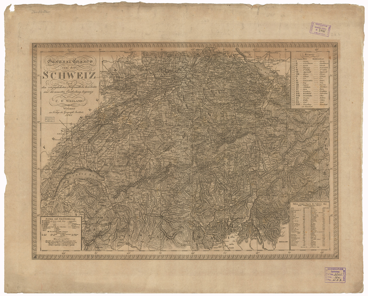 "Autore: C.F. Weiland Fogli 1 (esiste una copia) Tipo di stampa: incisione su rame, rappresentazione orografica dimostrativa. Inventario SBN 7-3541"