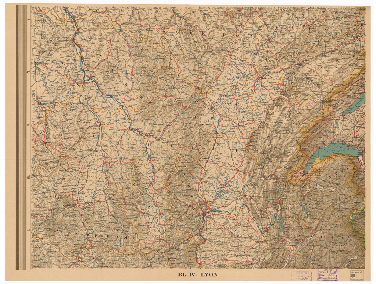 "Autore: J. Randegger Fogli 9 - Tipo di stampa: policroma, rappresentazione orografica a sfumo. Inventario SBN 7-1196"
