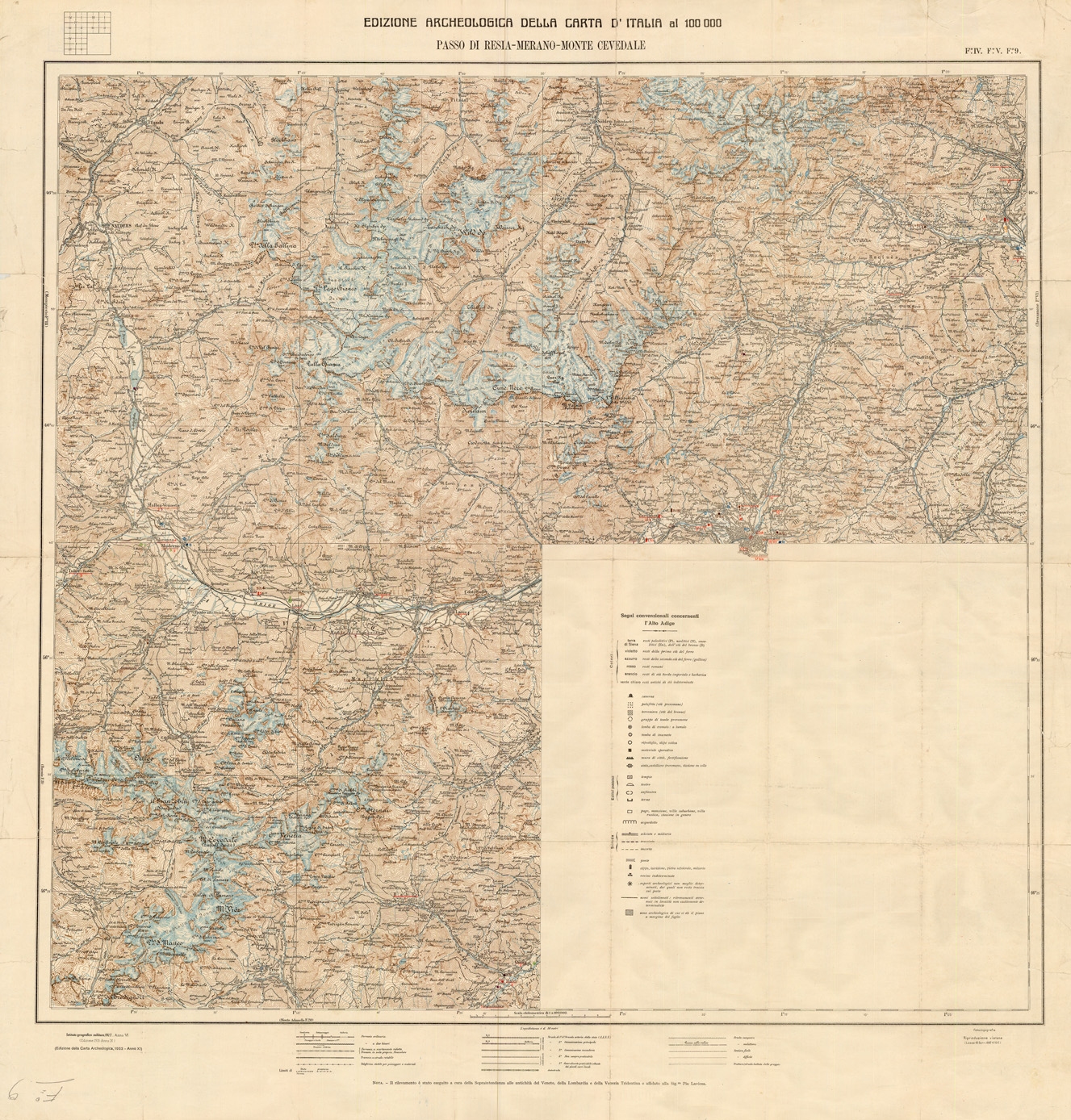 EDIZIONE ARCHEOLOGICA DELLA CARTA D'ITALIA FOGLIO 9 PASSO DI RESIA - MERANO - MONTE CEVEDALE
