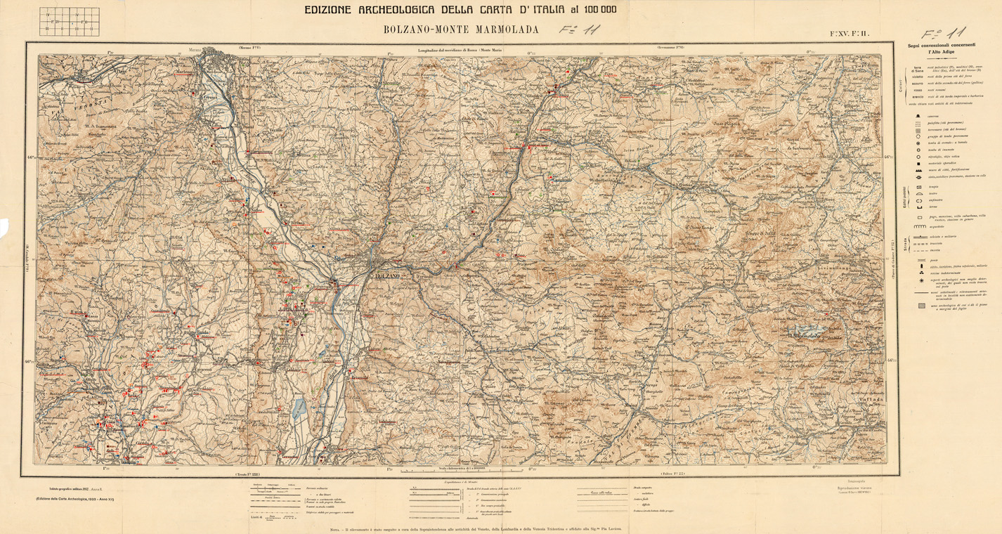 EDIZIONE ARCHEOLOGICA DELLA CARTA D'ITALIA FOGLIO 11 BOLZANO MONTE MARMOLADA