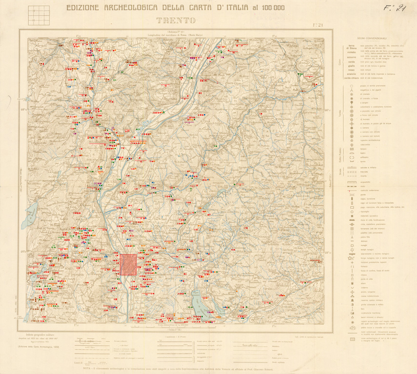 EDIZIONE ARCHEOLOGICA DELLA CARTA D'ITALIA FOGLIO 21 TRENTO