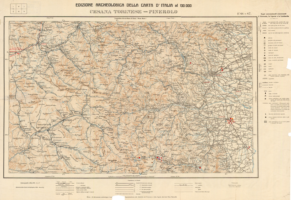 EDIZIONE ARCHEOLOGICA DELLA CARTA D'ITALIA FOGLIO 66-67 CESANA TORINESE-PINEROLO