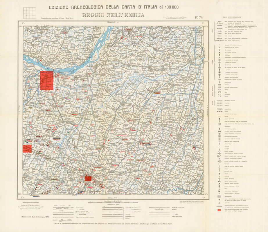 EDIZIONE ARCHEOLOGICA DELLA CARTA D'ITALIA FOGLIO 74 REGGIO NELL'EMILIA