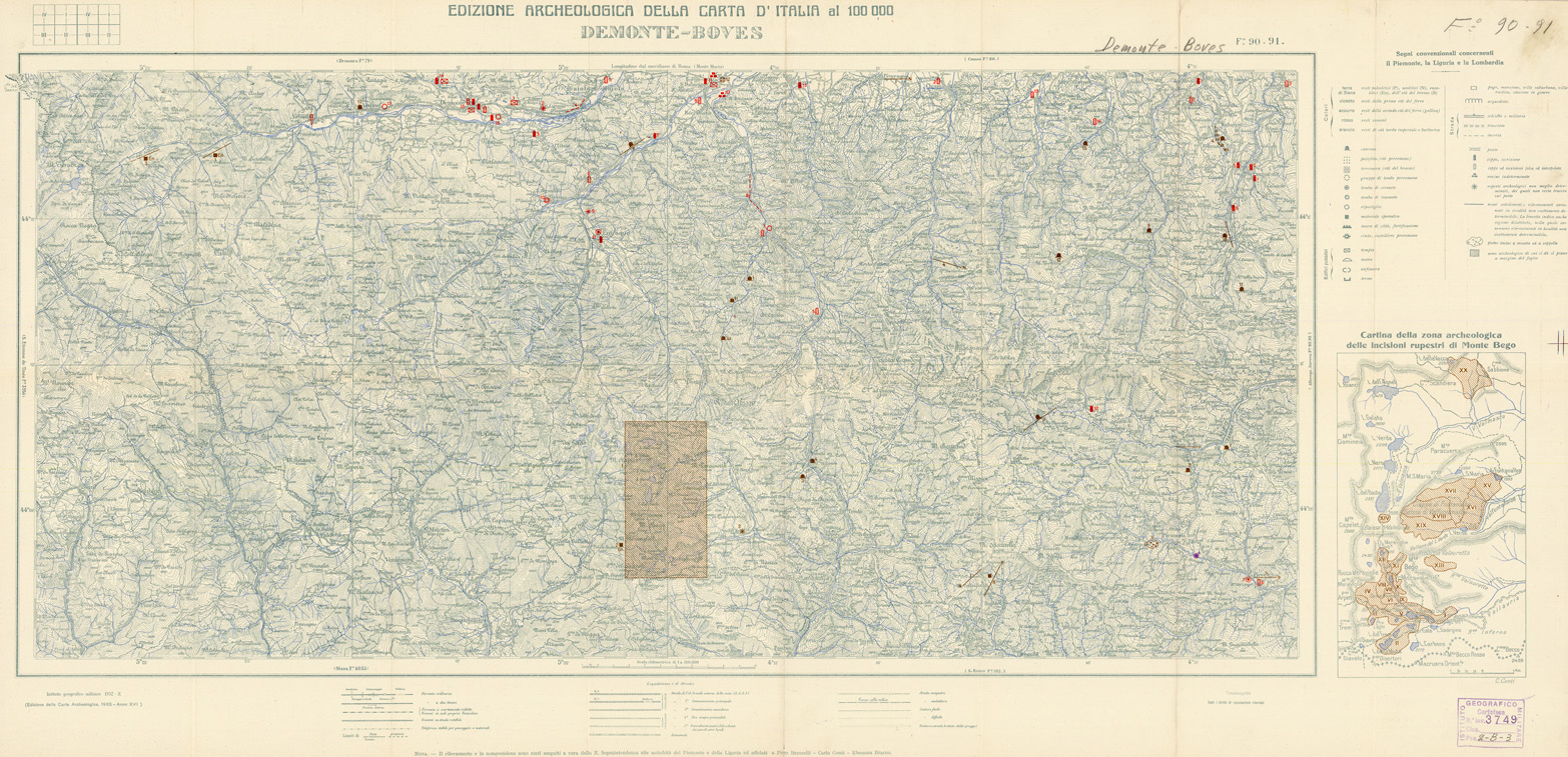 EDIZIONE ARCHEOLOGICA DELLA CARTA D'ITALIA FOGLIO 90-91 DEMONTE-BOVES
