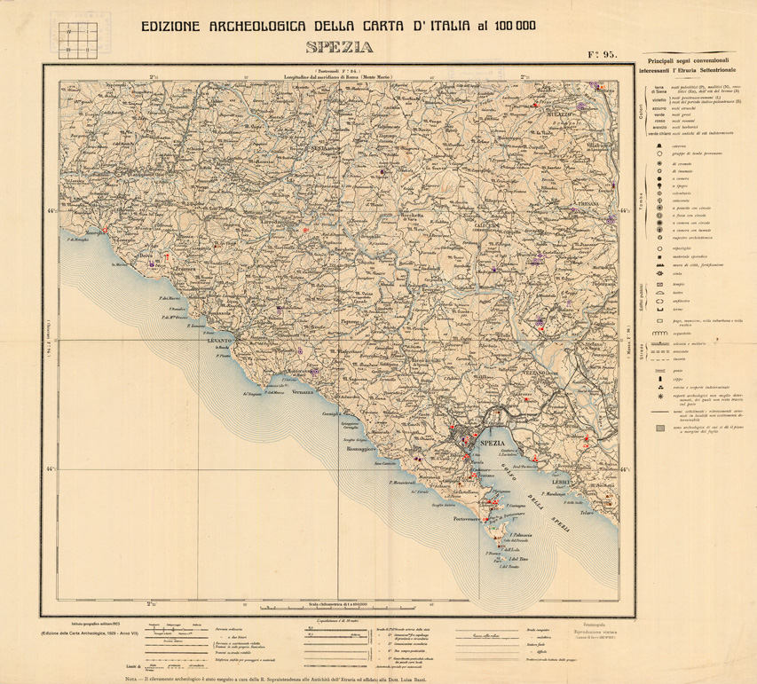 EDIZIONE ARCHEOLOGICA DELLA CARTA D'ITALIA FOGLIO 95 SPEZIA