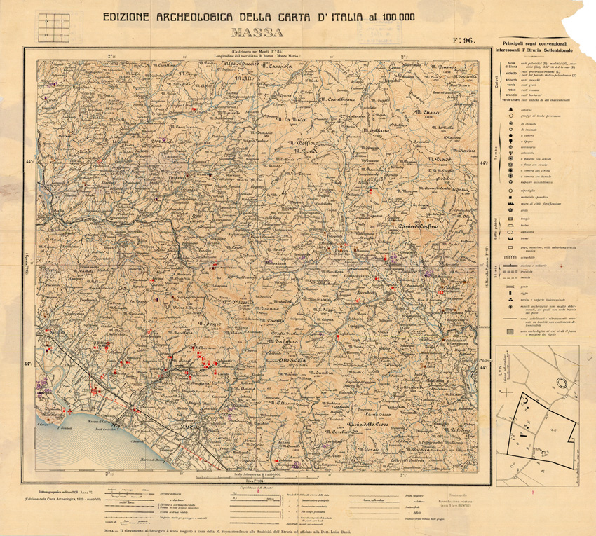 EDIZIONE ARCHEOLOGICA DELLA CARTA D'ITALIA FOGLIO 96 MASSA