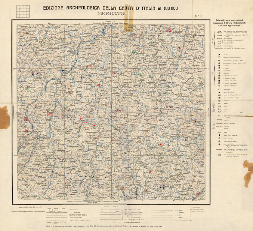 EDIZIONE ARCHEOLOGICA DELLA CARTA D'ITALIA FOGLIO 98 VERGATO