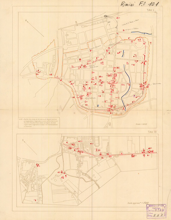 EDIZIONE ARCHEOLOGICA DELLA CARTA D'ITALIA CITTA' DI RIMINI FOGLIO 101 TAVOLE I-III