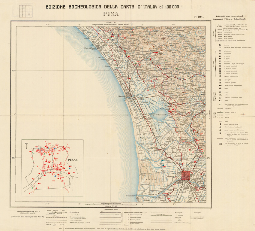 EDIZIONE ARCHEOLOGICA DELLA CARTA D'ITALIA FOGLIO 104 PISA