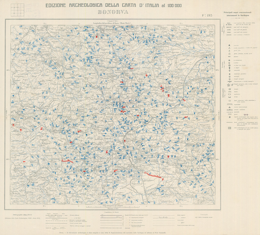 EDIZIONE ARCHEOLOGICA DELLA CARTA D'ITALIA FOGLIO 193 BONORVA