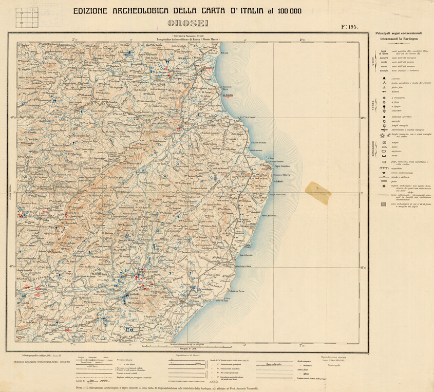 EDIZIONE ARCHEOLOGICA DELLA CARTA D'ITALIA FOGLIO 195 OROSEI