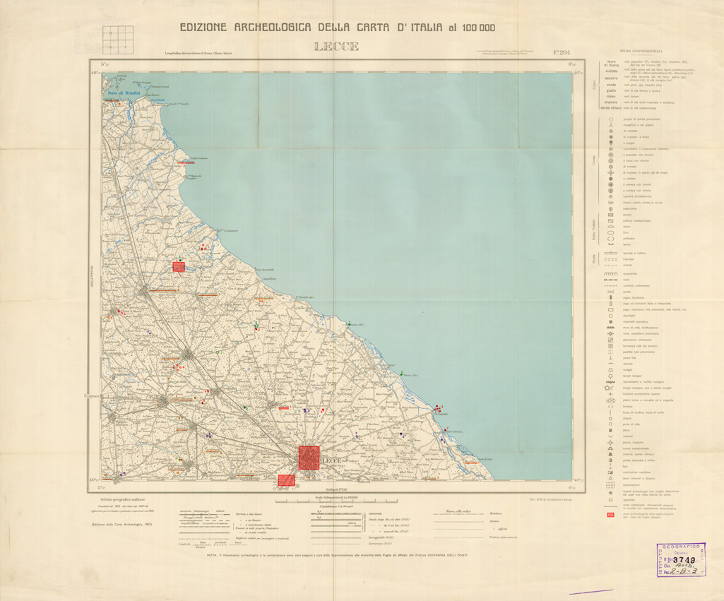 EDIZIONE ARCHEOLOGICA DELLA CARTA D'ITALIA FOGLIO 204 LECCE