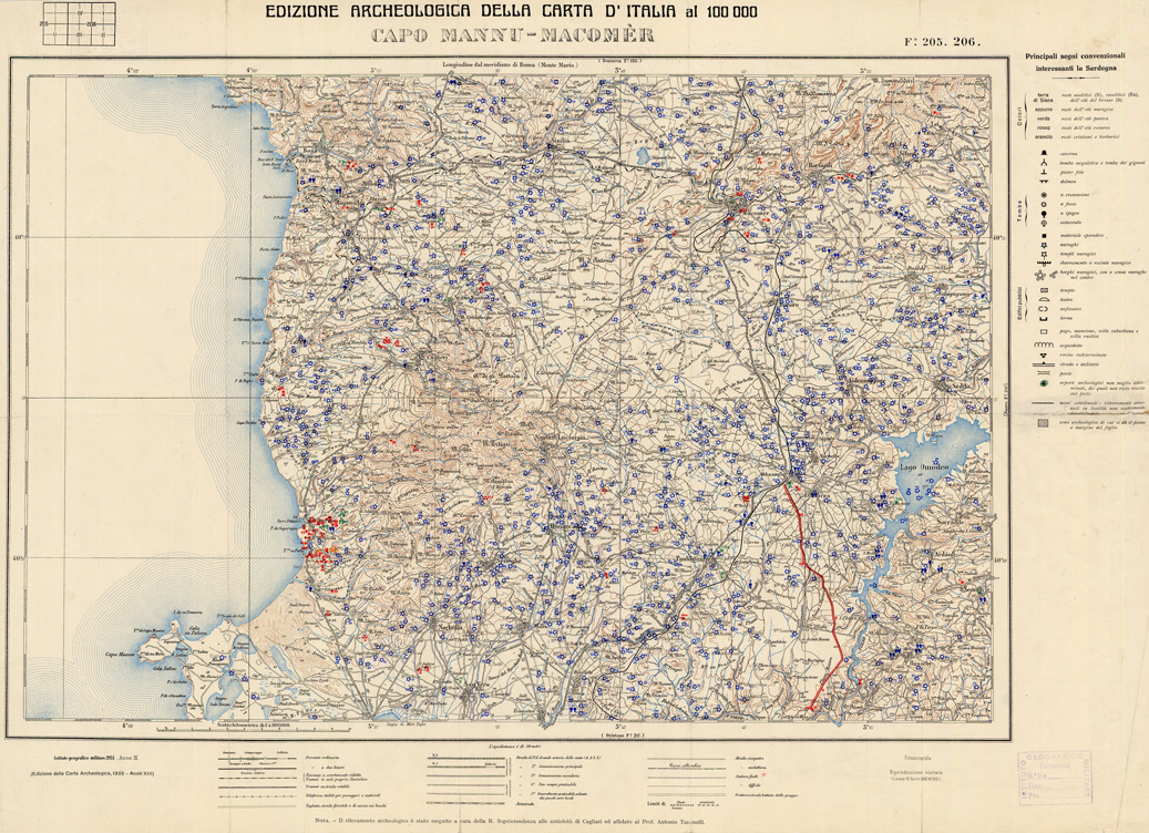 EDIZIONE ARCHEOLOGICA DELLA CARTA D'ITALIA FOGLIO 205 - 206 CAPO MANNU - MACOMER