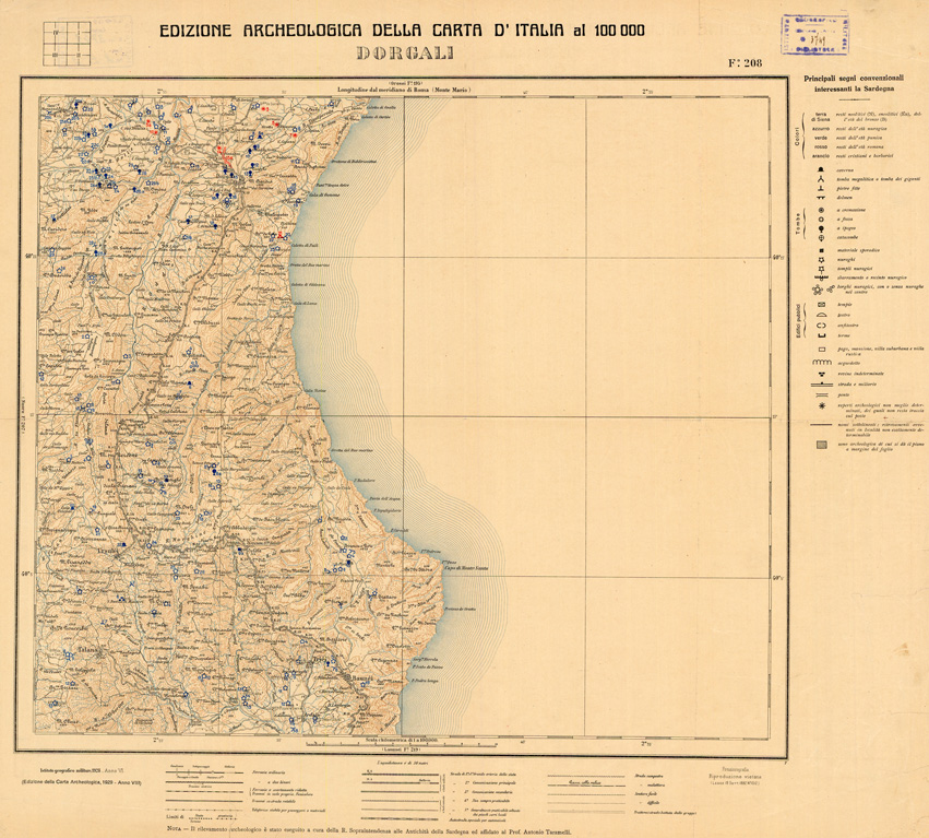 EDIZIONE ARCHEOLOGICA DELLA CARTA D'ITALIA FOGLIO 208 DORGALI