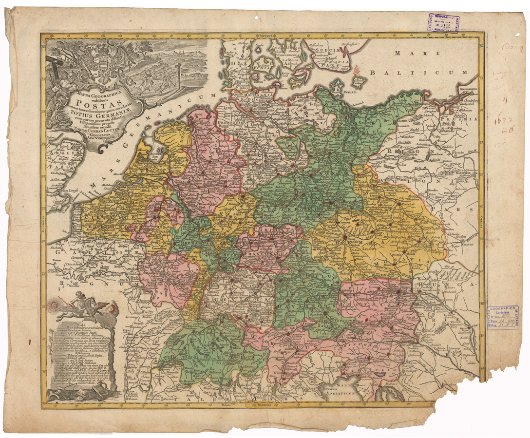 MAPPA GEOGRAPHICA EXHIBENS POSTAS OMNES TAM VEHICULARES QUAM VEREDARIAS TOTIUS GERMANIAE ECC...