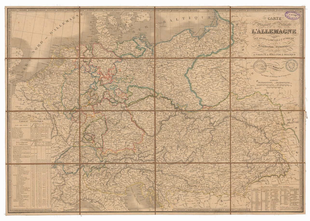 CARTE PHISIQUE ET POLITIQUE DE L'ALLEMAGNE COMPRENANT LES ETATS DE LA PRUSSE DE L'AUTRICHE ET CEUX DE LA CONFIDERATION GERMANIQUE