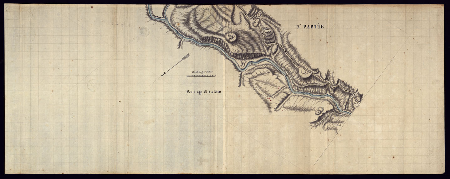 "La carta senza titolo è in sei fogli. Rappresenta l'alta e media valle de l'Arc a monte di Modane sino a Termignon con le strade adiacenti e i centri abitati, l'orografia schematica è ad acquerello. Scala grafica di cento trabucchi = m. 0,053 da cui si deduce il rapporto approssimativo di 1:5.900 circa. Manca il reticolato geografico. Senza indicazione di autore nè di data ma riferibile, per quanto si può ritenere dal disegno e dalle scritture, alla fine del secolo XVIII."