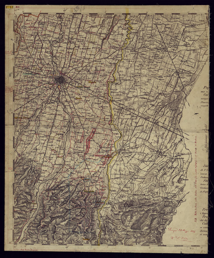 CARTA TOPOGRAFICA DELLA LOMBARDIA, VENETO E ITALIA CENTRALE - FOGLIO D7 (OVEST) PARMA.