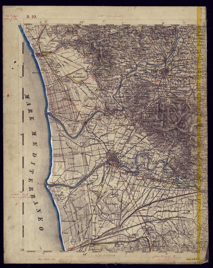 CARTA TOPOGRAFICA DELLA LOMBARDIA, VENETO E ITALIA CENTRALE - FOGLIO D10 (OVEST) LUCCA.