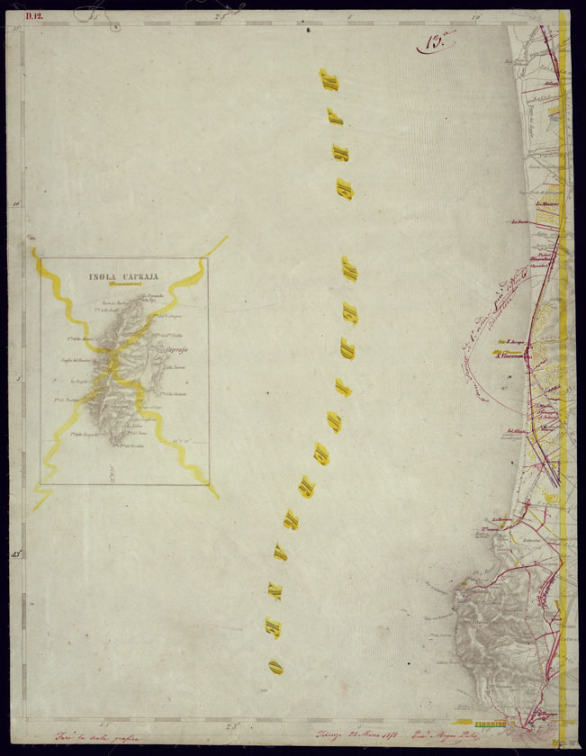 CARTA TOPOGRAFICA DELLA LOMBARDIA, VENETO E ITALIA CENTRALE - FOGLIO D12 (OVEST) ISOLA DI CAPRAIA.