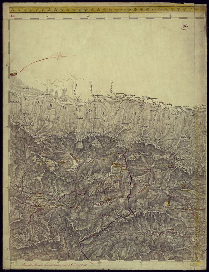 "Ingrandimento fotolitografico, eseguito dall'Istituto Topografico, della carta del Lombardo Veneto realizzata originariamente dall'Istituto Geografico Militare di Vienna alla scala di 1:86.400 e già precedentemente riprodotta (cartella n.51, documento n.1). Questo ingrandimento alla scala 1:75.000 consta di 138 mezzi fogli, in cui sono riportati gli aggiornamenti, eseguiti tra il 1876 e il 1890, per le ferrovie, i corsi d'acqua principali e per le strade rotabili a fondo artificiale."