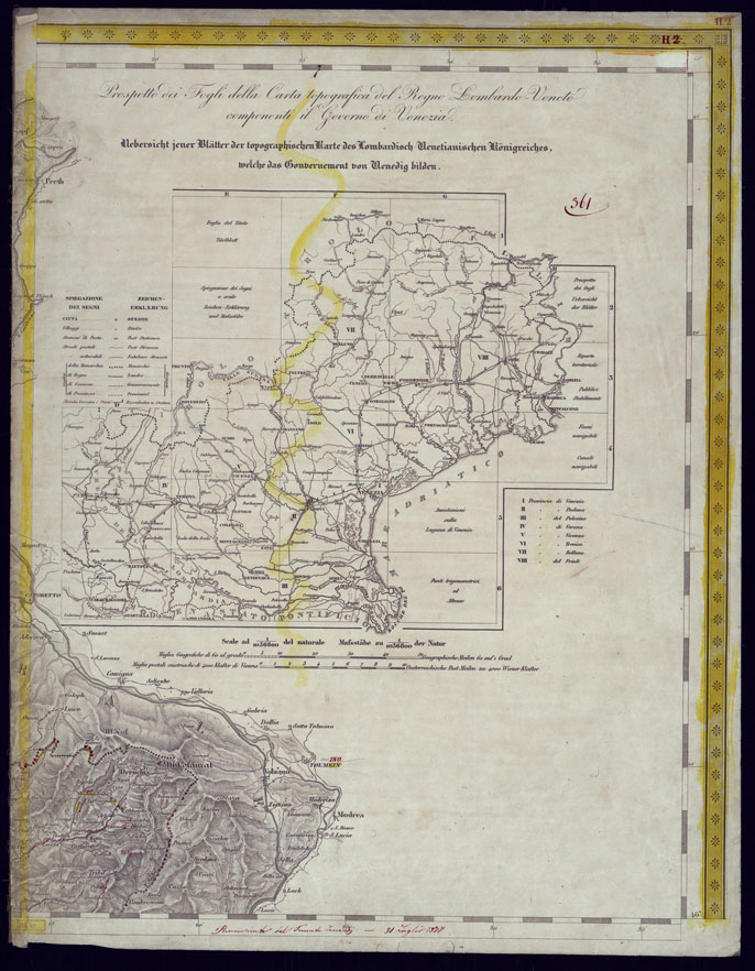 CARTA TOPOGRAFICA DELLA LOMBARDIA, VENETO E ITALIA CENTRALE - FOGLIO H1-H2 (EST) PROSPETTO DEI FOGLI COMPONENTI IL GOVERNO DI VENEZIA.