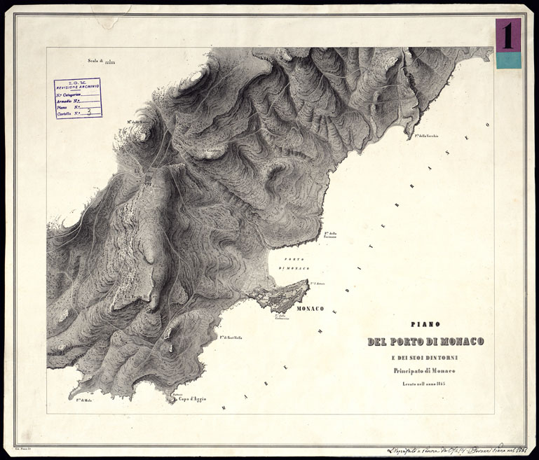 PIANO DEL PORTO DI MONACO E DEI SUOI DINTORNI, Principato di Monaco, Levato nell'anno 1845.