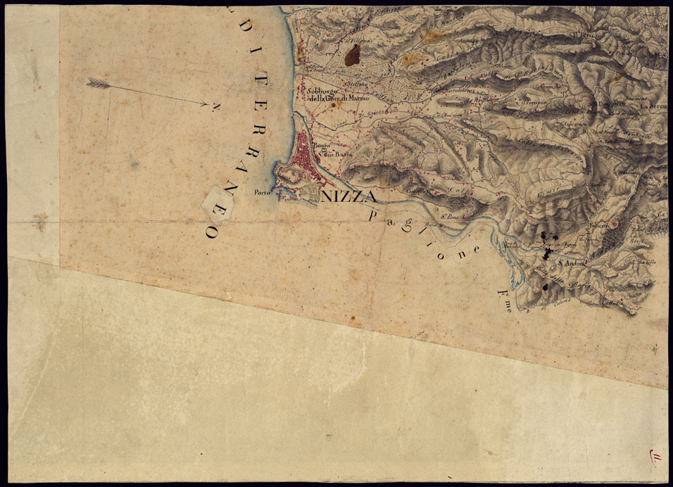 CARTA ORIGINALE LEVATA SUL TERRENO ALLA SCALA 1:20 000 CHE DALLA VALLE DI BLORA SI ESTENDE FINO AL MARE E DALLA VESUBIA SINO AI CONFINI DELLA FRANCIA SUL FIUME VAR E PARTE DELL'ESTERON - FOGLIO 12.