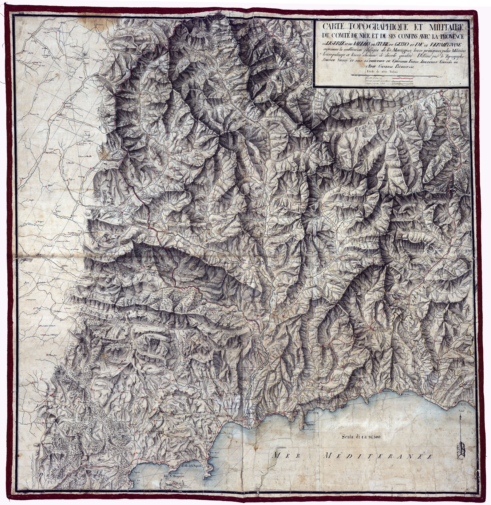 CARTE TOPOGRAPHIQUE ET MILITAIRE DU COMTE' DE NICE ET DE SES CONFINS AVEC LA PROVINCE LA LIGURIE ET LES VALLEES DE STURE DU GESSO ET DE LA VERMEGNANE