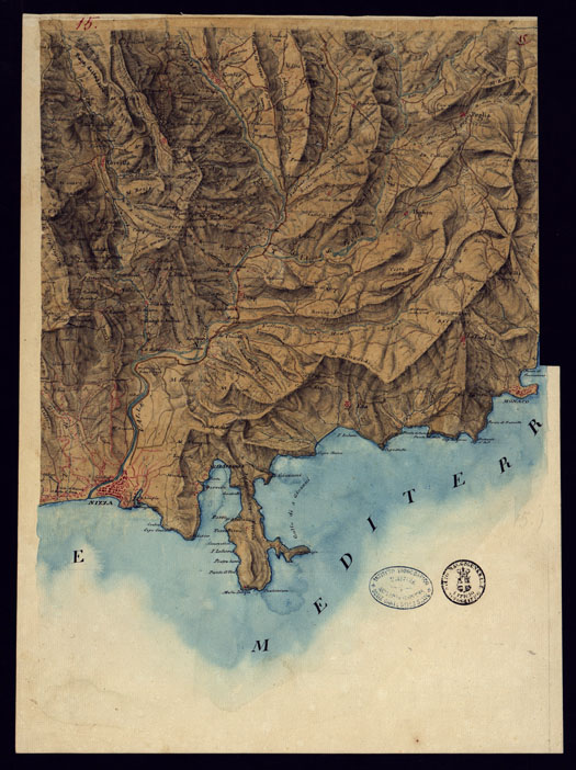 PIANO TOPOGRAFICO DEL CONTADO DI NIZZA DISEGNATO D'ORDINE DI S.E. MARCHESE DI FAVERGES T.E GENERALE, GOVERNATORE, E COMANDANTE G.LE DELLA DIVISIONE DI CUNEO 1832 - FOGLIO 15.