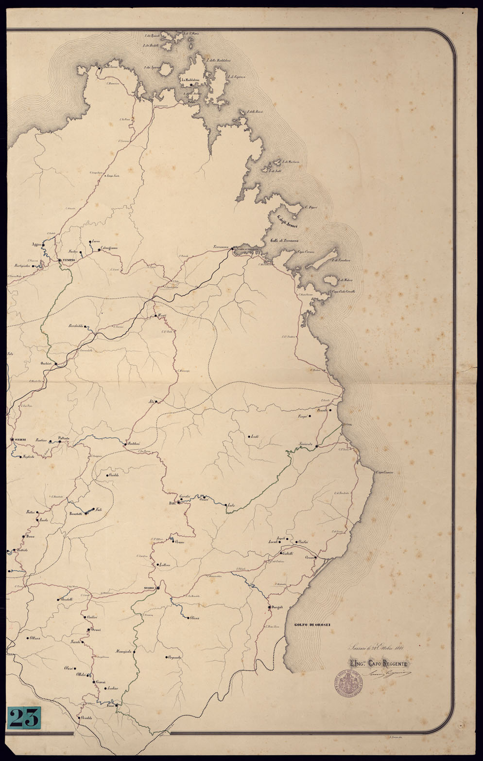 CARTA COROGRAFICA STRADALE DELLA PROVINCIA DI SASSARI A TUTTO IL 1881 SCALA DI 1:.150.000 - FOGLIO EST