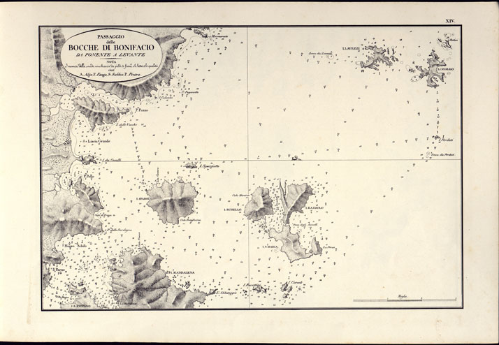 PORTOLANO DELLA SARDEGNA - CARTA IDROGRAFICA DELLA SARDEGNA LEVATA DAL CAVALIERE GIUSEPPE ALBINI CAPITANO DI VASCELLO NELLA MARINA DI S.M. SARDA - PASSAGGIO DELLE BOCCHE DI BONIFACIO DA PONENTE A LEVANTE TAVOLA XIV.