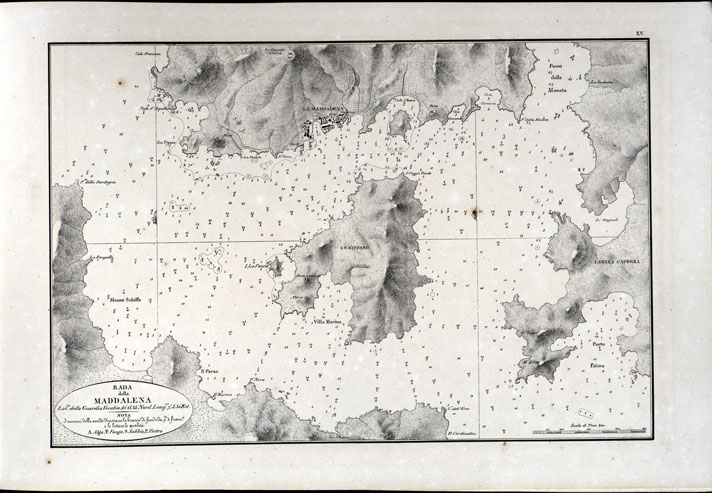 PORTOLANO DELLA SARDEGNA - CARTA IDROGRAFICA DELLA SARDEGNA LEVATA DAL CAVALIERE GIUSEPPE ALBINI CAPITANO DI VASCELLO NELLA MARINA DI S.M. SARDA - RADA DELLA MADDALENA TAVOLA XV.