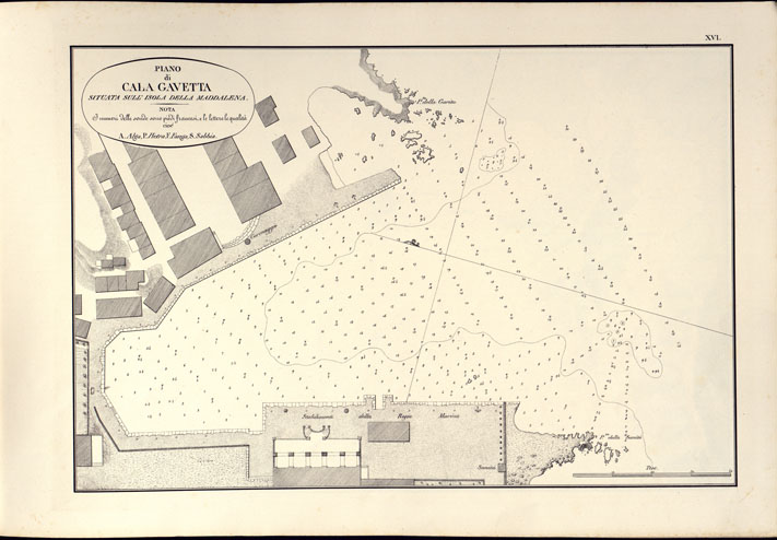 PORTOLANO DELLA SARDEGNA - CARTA IDROGRAFICA DELLA SARDEGNA LEVATA DAL CAVALIERE GIUSEPPE ALBINI CAPITANO DI VASCELLO NELLA MARINA DI S.M. SARDA - PIANO DI CALA GAVETTA SITUATA SULL'ISOLA DELLA MADDALENA TAVOLA XVI.