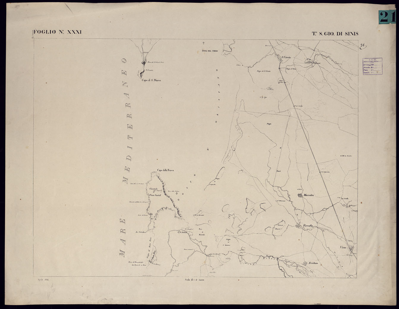 ATLANTE DELL'ISOLA DI SARDEGNA - FOGLIO XXXI TORRE DI SAN GIOVANNI IN SINIS.
