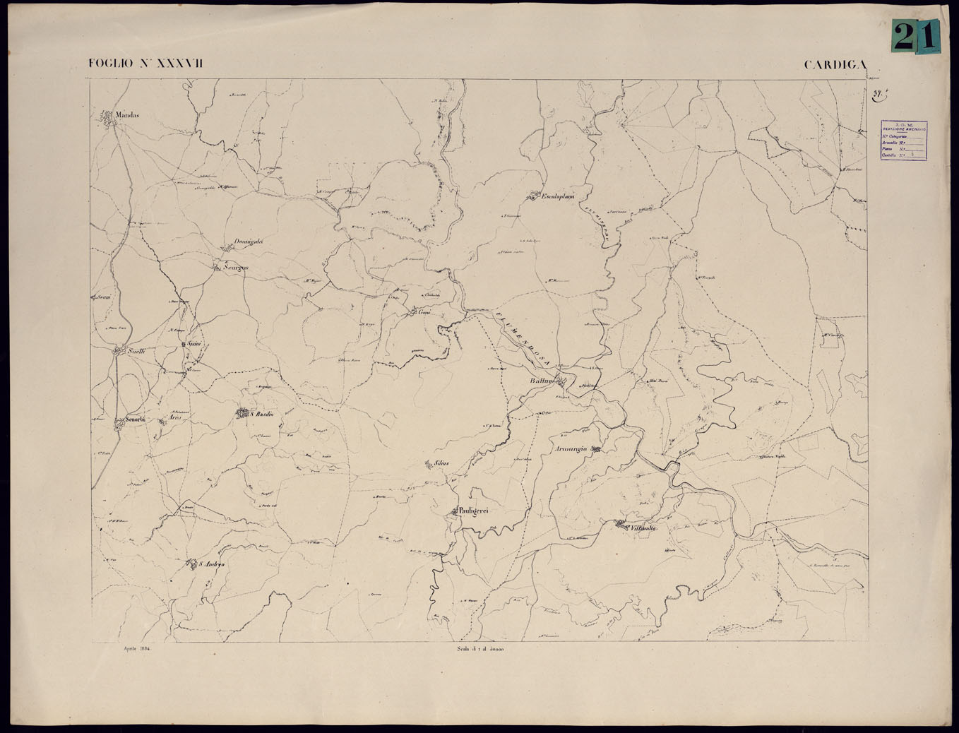 ATLANTE DELL'ISOLA DI SARDEGNA - FOGLIO XXXVII CARDIGA.