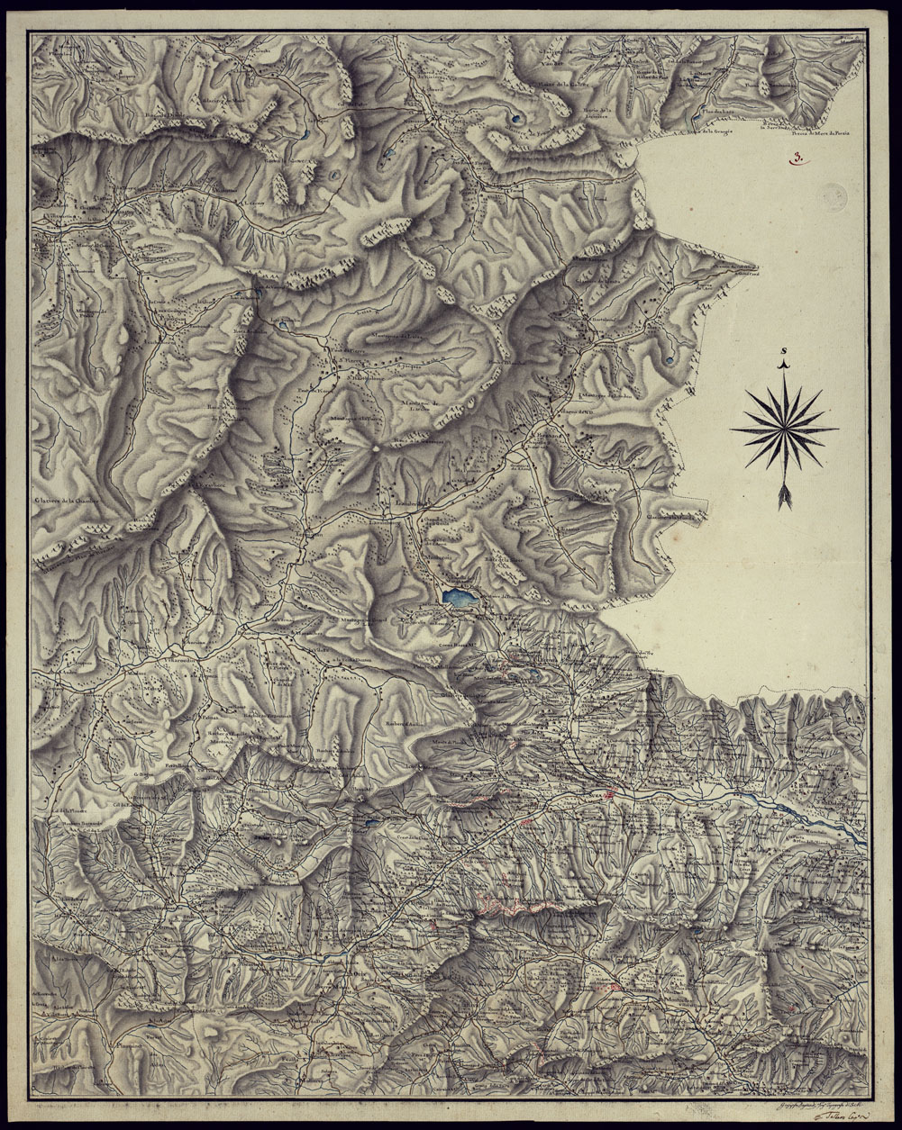 PIANO TOPOGRAFICO DELLE VALLI DI BRIANZONE DI QUEIRAS E DI PARTE DELL'UBAJE ED UBAJETTA IN FRANCIA - FOGLIO 3 (DUPLICATO ACQUERELLATO).