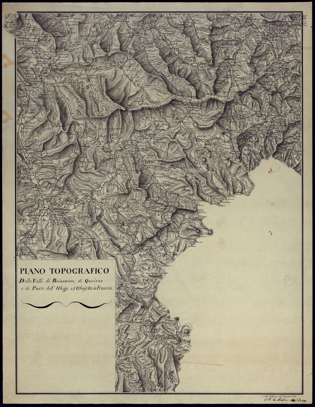 PIANO TOPOGRAFICO DELLE VALLI DI BRIANZONE DI QUEIRAS E DI PARTE DELL'UBAJE ED UBAJETTA IN FRANCIA - FOGLIO 4 (DUPLICATO ACQUERELLATO).