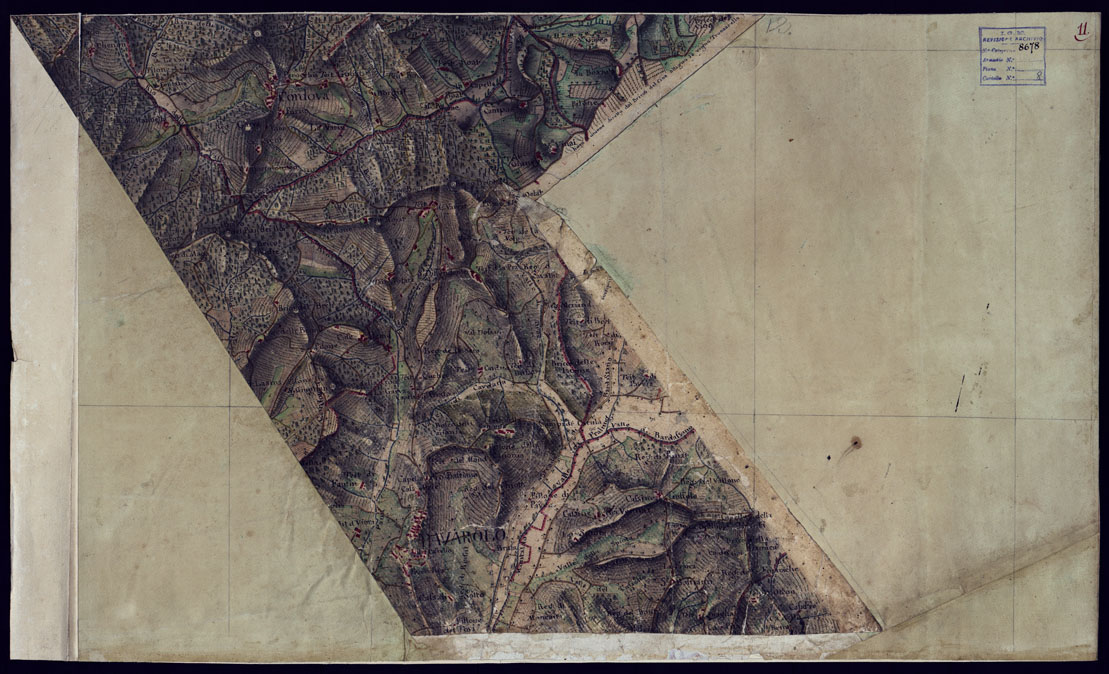 "Disegno a penna, in 37 fogli, oltre un quadro d'unione, rappresentante il territorio Canavese e i Comuni limitrofi (Gassino, S. Mauro Torinese, Castiglion Torinese e Pavarolo) e cioè la regione compresa tra Ciriè, S. Mauro, il corso del Po e la Dora Baltea. Scala di 300 trabucchi = m.0,098, pari a 1:9.450. Secondo indicazioni di archivio risulterebbe formato dalla riduzione di mappe catastali. Non porta indicazioni di data , ma si può ritenere del primo quarto del secolo XIX. Sopra alcuni fogli che appaiano diversamente ritagliati da come erano originariamente, si legge: " Originale dai Signor Avico, Borgiotti Cantù e Marchetti". Il disegno, abbastanza accurato, riproduce con notevole precisione, come comporta la scala, tutti i particolari topografici del territorio rappresentato cioè corsi d'acqua, rete stradale, fabbricati, limiti amministrativi. Il rilievo del suolo è rappresentato con ombreggiatura ad acquerello. Mediante colori a segni convenzionali sono indicate le colture e i boschi. Ricchissima anche la toponomastica. In complesso un eccellente documento topografico di grande interesse per lo studio delle variazioni fisiografiche ed antropogeografiche della regione."