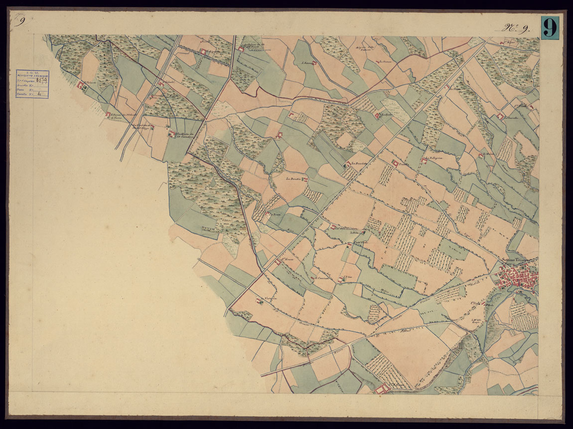 "Copia in bello della carta di cui al documento n. 8, accuratamente disegnata ed acquerellata, e suddivisa in 37 fogli più un quadro d'unione. Da note apposte in margine ad alcuni fogli si deduce che il disegno fu fatto negli anni 1821-22 dai Signori Basso, Bergalli, Brambilla Vittorio, Brignone, Burrio, Conti, Cossato, Gianotti, Rinaudo, Roggero e Valsecchi."