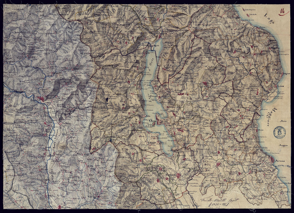 "Ventotto fogli di dimensioni diverse più un quadro d'unione, costituenti l'insieme delle levate topografiche del territorio Novarese tra il Lago Maggiore, il Ticino ad oriente, il Po a sud, le alpi a nord e il meridiano di Ivrea a ovest. La maggior parte dei fogli porta in calce la seguente dicitura: "Riconosciuto e fatto sul terreno nella Campagna dell'anno 1824 per essere unito al rapporto che lo concerne" a seguire la firma del capitano dello Stato Maggiore Generale che lo ha validato (Bergalli, Conte Salasco, Conte Castellengo, ecc). Disegno topografico eccellente. Orografia rappresentata con ombreggiatura ad acquerello. Confrontata con la carta degli Stati di S.M. Sarda in terraferma alla scala di 1:50.000 appare assai più accurata nel disegno orografico e maggiori sono i dati toponomastici."